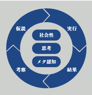 「試す・考える・伝える」探究のプロセスの過程で、メタ認知における「モニタリング」「コントロール」を養っていきます。コマづくりの活動の中で子どもたちは、自分の仮説や結果を振り返り、「なぜうまくいかなかったのか」「どの工夫が効果的だったのか」自分の思考を点検します。これが「メタ認知的モニタリング」です。そして、得られた気づきをもとに「次はこうしてみよう」と自ら考え方や行動を修正していく過程が、「メタ認知的コントロール」です。